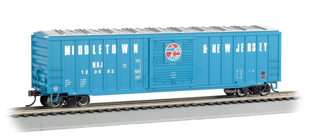 50'6" товарный вагон ACF со сдвижными дверями. Серия Silver. Принадлежность Middletown & New Jersey MNJ