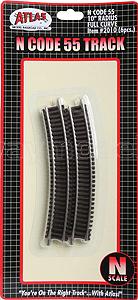 Рельсы код 55, никелированные, с коричневыми шпалами. 10" радиус, упаковка 6 шт