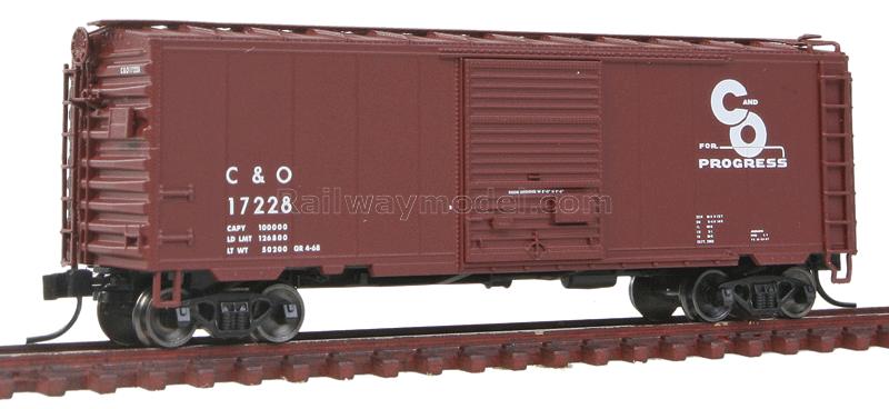 40' стандартный пульмановский товарный вагон PS-1 с 8' дверью, вариант крыши с 12-ю рёбрами жесткости. Принадлежность Chesapeake & Ohio #17228