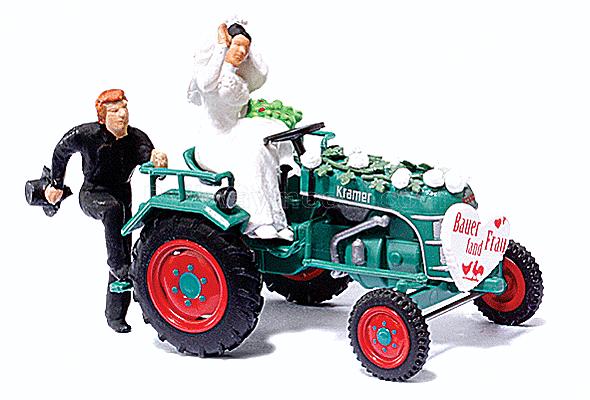 1953 Kramer KL 11 Farm Tractor - Assembled -- With Farmer, Bride & Sign (окрашен под естественно загрязненный от эксплуатации, запыленный вагон)