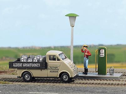 Complete Miniature Scene -- Beer Delivery Truck at Gas Pump