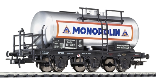 Трёхосная цистерна MONOPOLIN с тормозной площадкой. Принадлежность Частная жд. Эпоха II