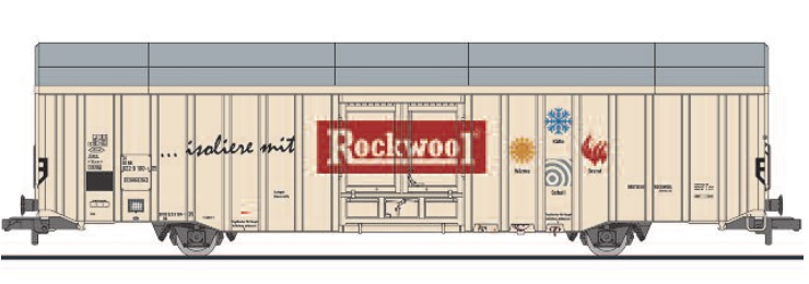 Товарный вагон тип Hbbks. Принадлежность DB, "Rockwool". Эпоха IV