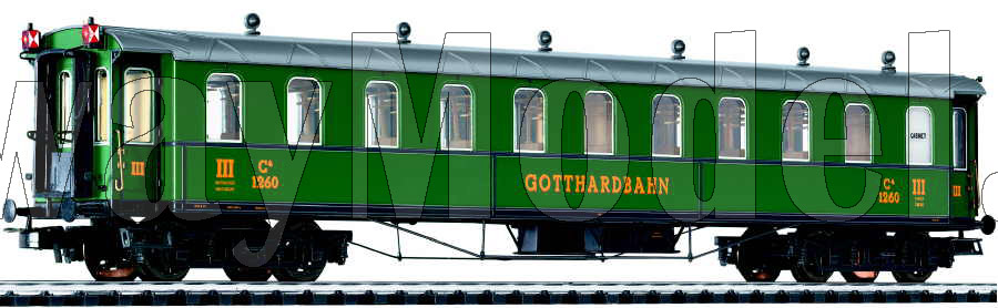 Пассажирский вагон 1 класса, тип C4u, Gotthardbahn с задними габаритными огнями на светодиодах. Принадлежность Частная жд. Эпоха I