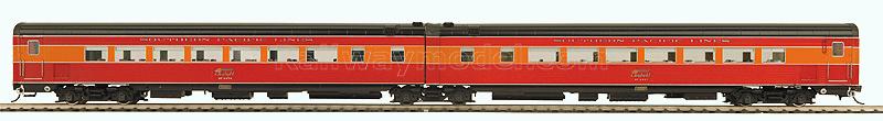 Пассажирские вагоны SP Daylight ##2460, 2459. Рекомендуется минимальный радиус 22 дюйма (559 мм).