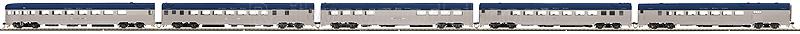 Пассажирский пятивагонный состав, вагоны с рифлеными стенами. Вагоны полностью собраны, установлено освещение.Принадлежность Nickel Plate