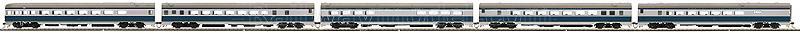 Пассажирский пятивагонный состав. Вагоны полностью собраны, установлено освещение. Принадлежность Missouri Pacific