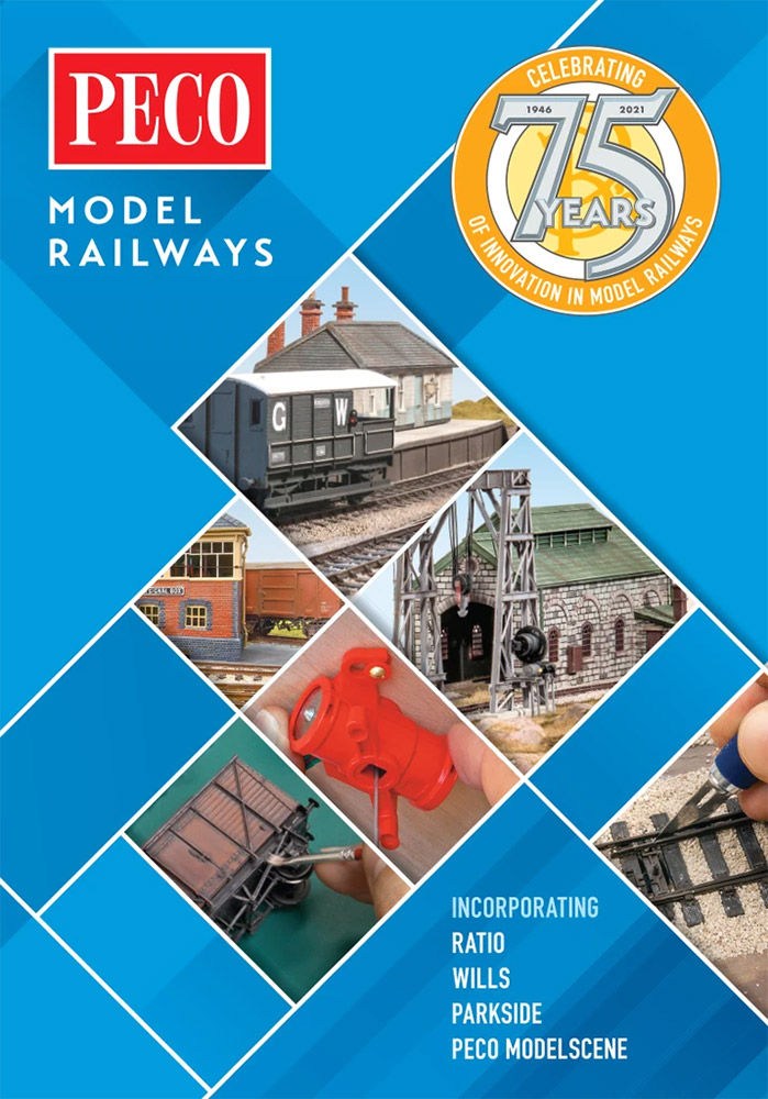 Каталог Peco, посвященный 75-летию компании. Полный ассортимент продукции Peco, в том числе модели производства Ratio, Wills, Modelscene, Parkside & Tracksetta. Приведено множество дополнительной информации, в том числе пояснения и полезные советы по различным масштабам и кодам рельсового материала стандартных и узкоколейных железных дорог, созданию основы для макета, укладке рельсового материала и электропроодке, использованию стрелочных переключателей и сервоприводов Smartswitch для управления стрелочными переводами и сигналами семафора, сборке и покраске зданий, ландшафтным работам.