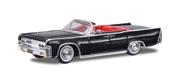 Ford Lincoln Continental Convertible Sedan, 1963г., черный. Модель великолепного качества с интерьером, хромовыми деталями и отлично выполненными мелкими надписями и т.п. Поставляется в прозрачном пластиковом боксе.